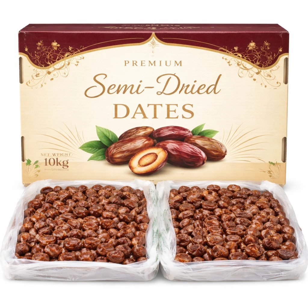 Enjoy the delicious taste of Premium Semi-Dried Dates, carefully selected for their natural sweetness, soft texture, and rich flavor. These high-quality dates are perfect for healthy snacking, desserts, and traditional meals.